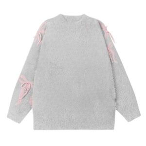 Elegant Bow-Detail Grey Knit Sweater